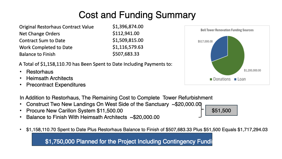 While there have been small repairs and some repainting done over the past century, some significant work needs to be done now on the sheet metal exterior, the plywood underneath, the window frames, the domed roof and the weather vane. A new weatherproof membrane will be installed to protect the interior of the bell tower, and the new sheet of tin coated stainless steel siding will be painted to the original three colors (looking very similar in color to the courthouse). For a number of months, scaffolding will surround the bell tower, but we are hopeful that a path will be created so as to not block the doors or the ramp into the north entryway. Using the specialty materials mentioned above along with proven historic building restoration techniques, it is expected that the bell tower will last for another 130 years.